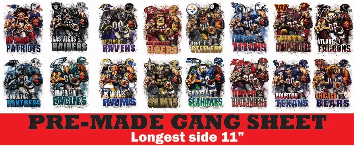NFL MASCOT #1 – PRE-MADE GANG SHEET
