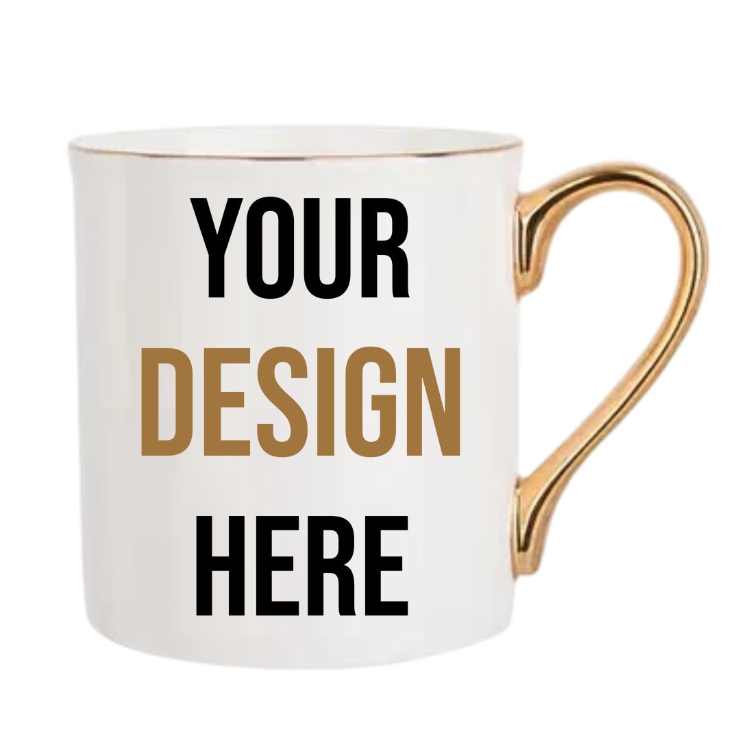 Elevate your drinkware with our Custom White Mug with Gold Rim and Handle, crafted from premium bone china. These mugs are exceptionally lightweight yet durable, combining practicality with refined beauty. Each size features a unique handle design, making every mug feel truly one-of-a-kind.