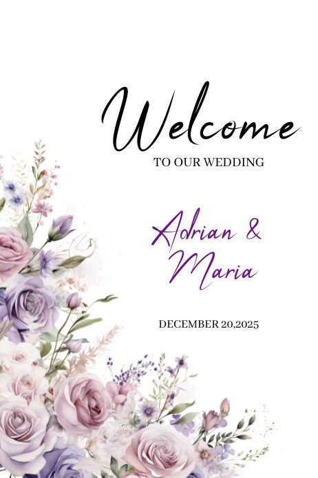 Names (e.g., “Welcome to Sarah & James’ Wedding”)