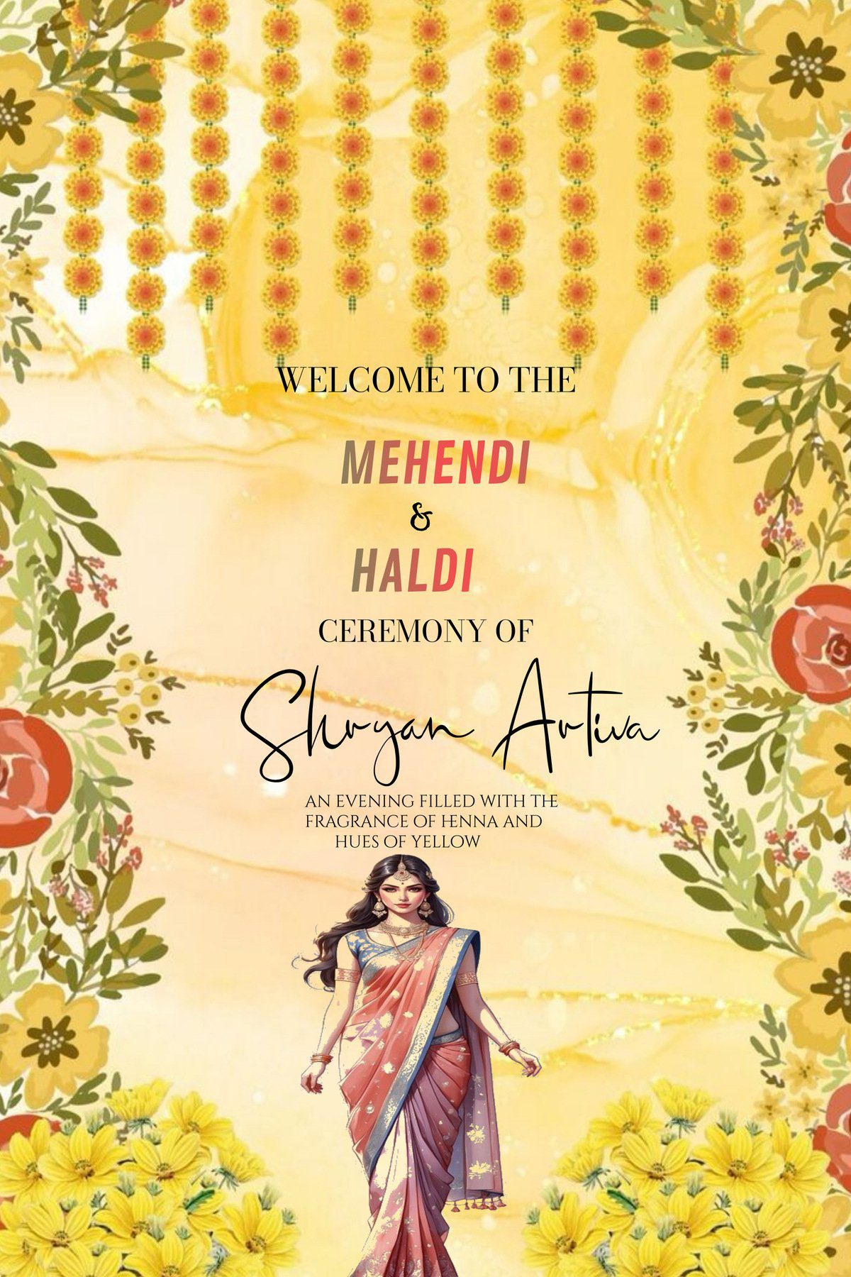Orange Maximalist Mehendi And Haldi Wedding Ceremony- Welcome Sign